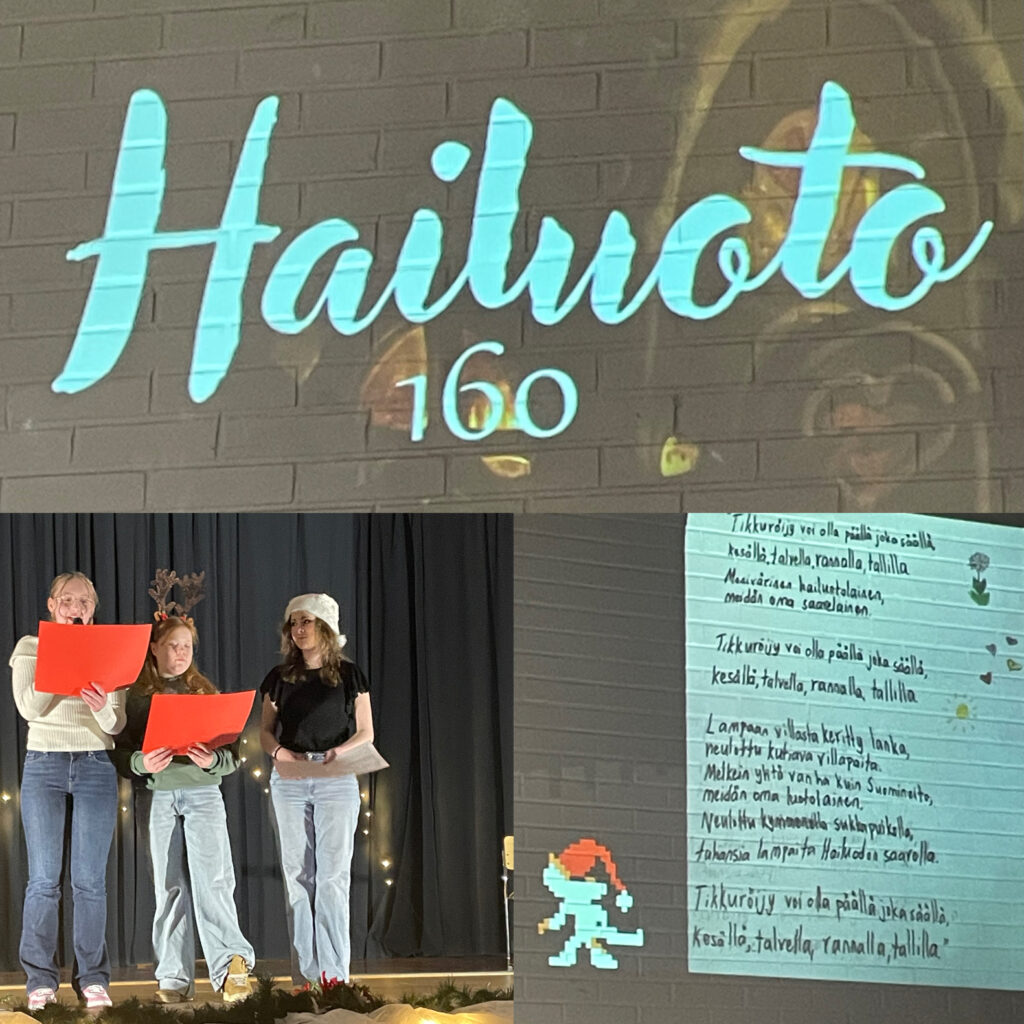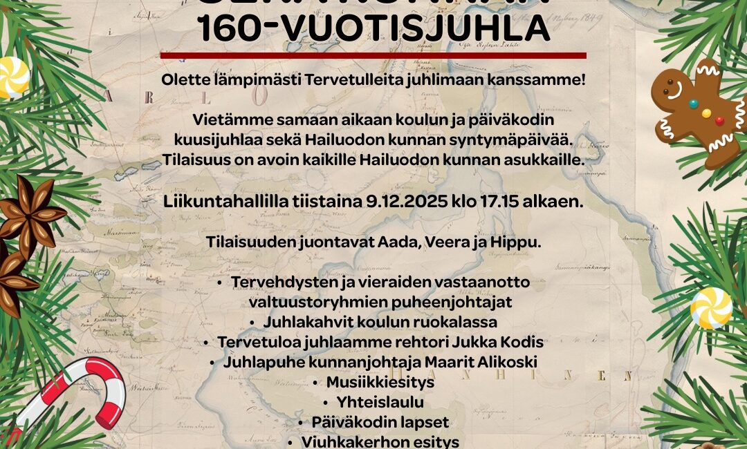 Vietimme lämminhenkiset koulun ja päiväkodin yhteisen kuusijuhlan ja kunnan 160-vuotisjuhlan tiistaina 9.12.2025 koulun liikuntahallilla. Aluksi käteltiin valtuustoryhmien puheenjohtajat ja nautittiin yhdessä koulun keittolan valmistamat täytekakkukahvit.
