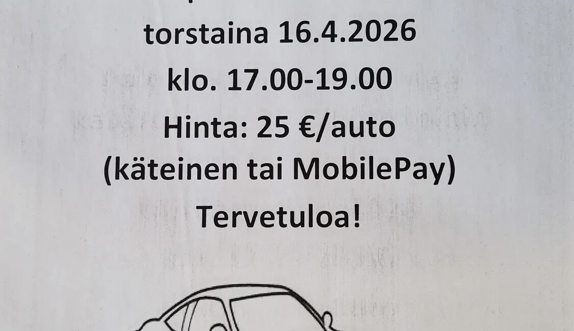 Hinta 25,- auto. Maksu käteisellä tai Mobilepay