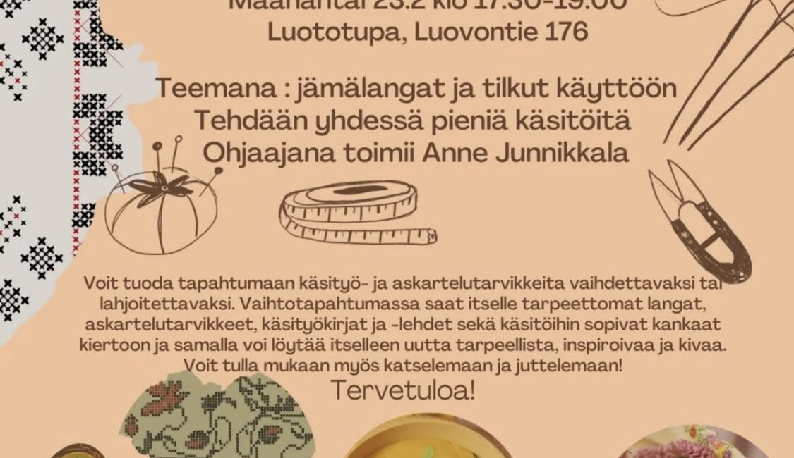 Tule mukaan tutustumaan Marttojen vuoden 2026 käsityöteemaan ja ja hyödyntämään kotoa löytyviä jämälankoja ja kangastilkkuja Luototuvalle maanantaina 23.2. klo 17.30 alkaen.